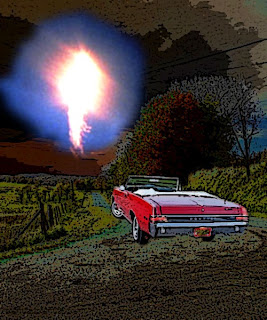 Thinking that the convertible could have been rear-ended during the night by a careless motorist, Marx stepped outside to inspect the damage. "I was really shocked. My car was white; the hood and the trunk lid had bubbles all over them; the chrome around the windshield was burned to a bluish color." The car's red upholstery had been faded to an orangeish hue.